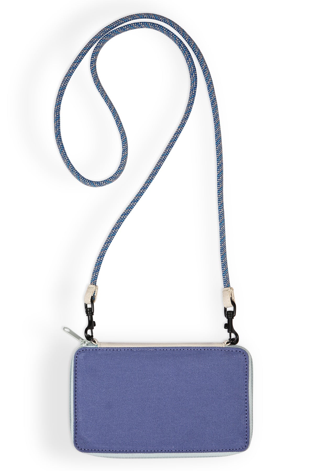 This cross body bi-fold wallet case features a fixed rope shoulder strap that can detach with metal spring hook hardware, one main compartment with zip closure, internal zip pocket and multiple internal cash, card and ID slots. It's go time!