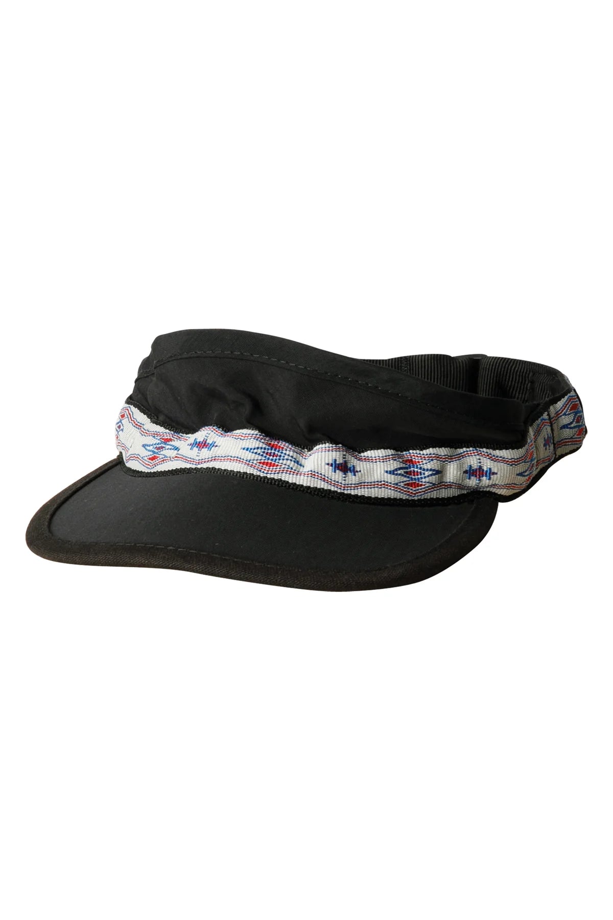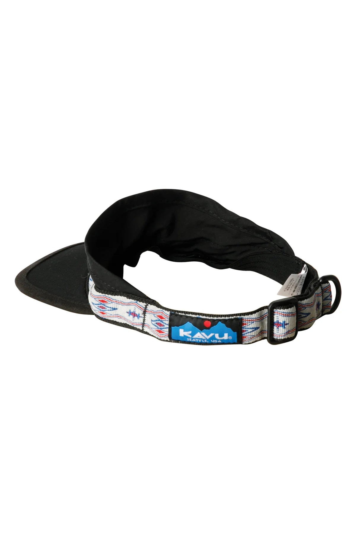 Low profile visor, slight curved bill, black underbill, patterned nylon tubular webbing with KAVU adjustment.