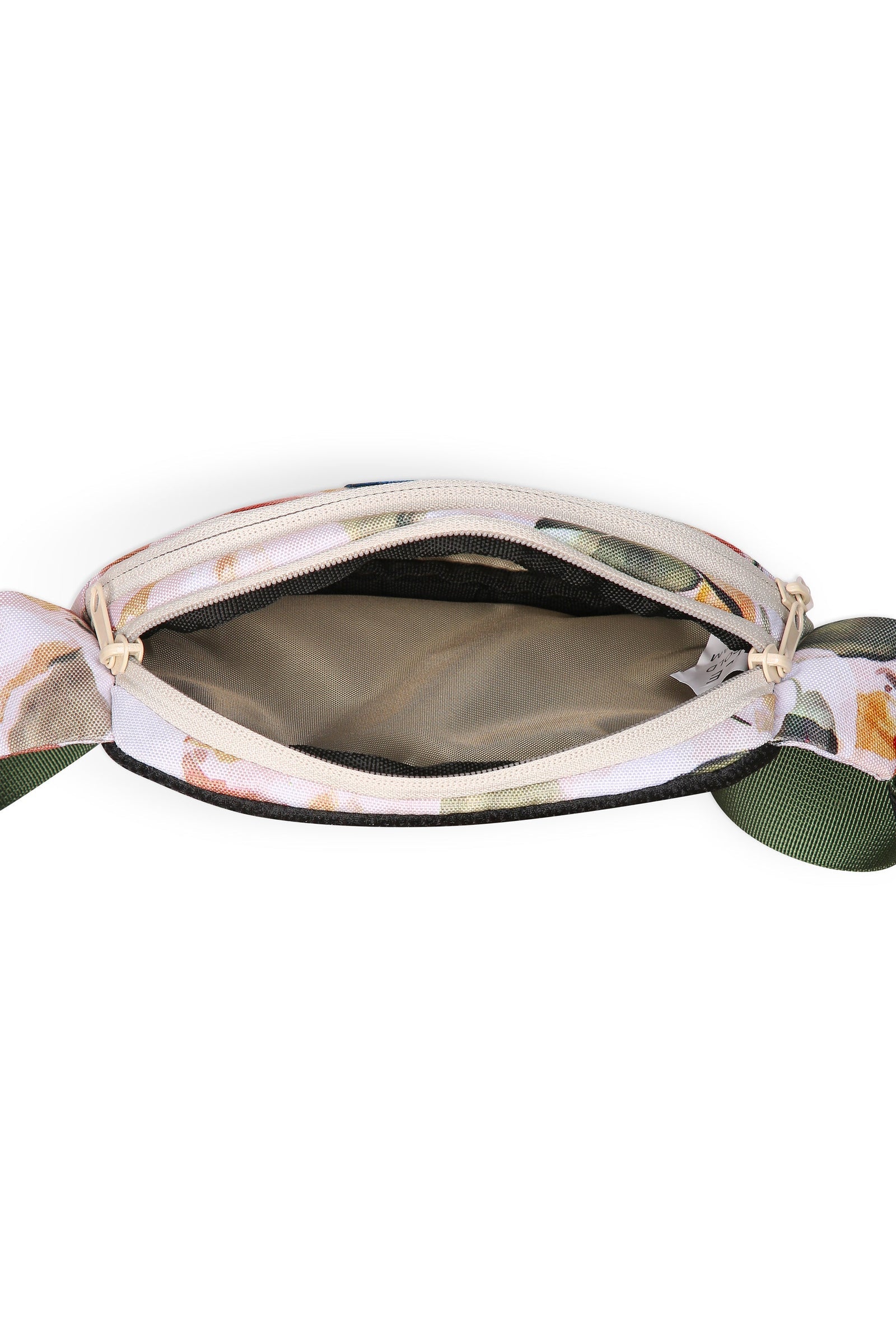 Belt / sling bag with adjustable straps and side release buckle, two compartment design with zip closure, padded back panel.
