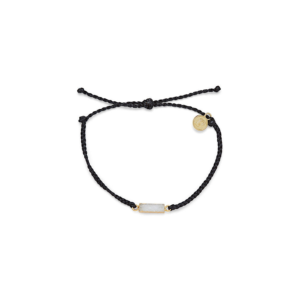 Add a touch of elegance to any outfit with Pura Vida's Druzy Bracelet. Featuring a rectangular druzy charm and a bitty braid band, this super-luxe style comes in two charm finishes: silver with an ocean-blue stone and gold with a chic white quartz stone.