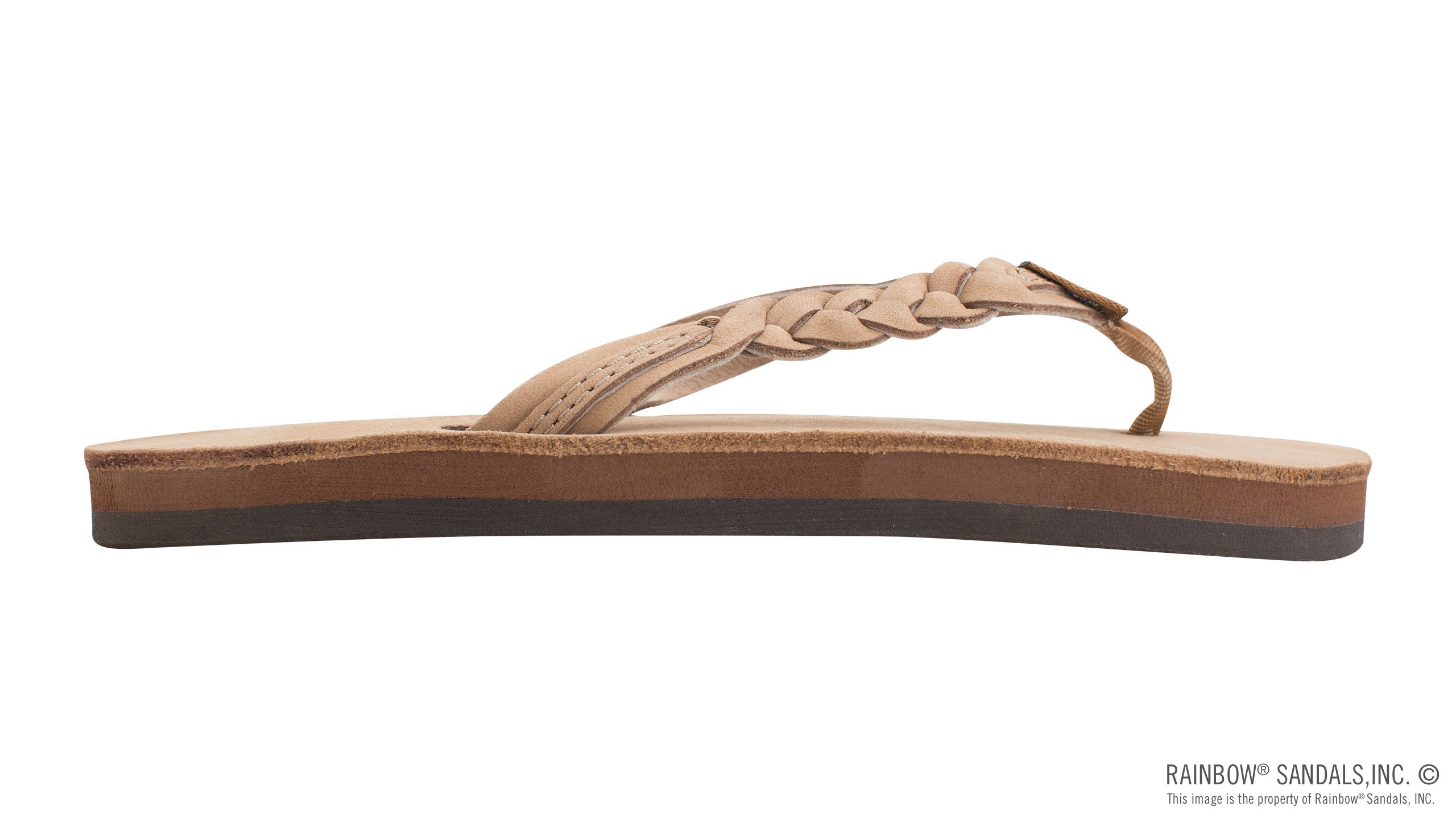 Our kids are made with top grade nubuck leather for durability and comfort, they are a single layer but do not have an arch because little feet don't quite need them yet. We use a non–slip bottom sole, which is embossed with the Rainbow® name.