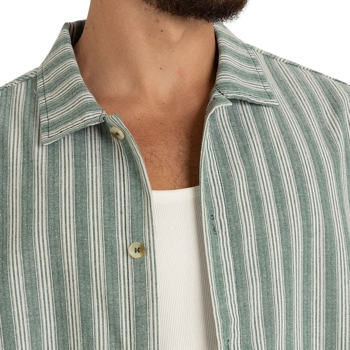 100% cotton, mid weight fabrication, Cuban collar, straight hem, machine wash.