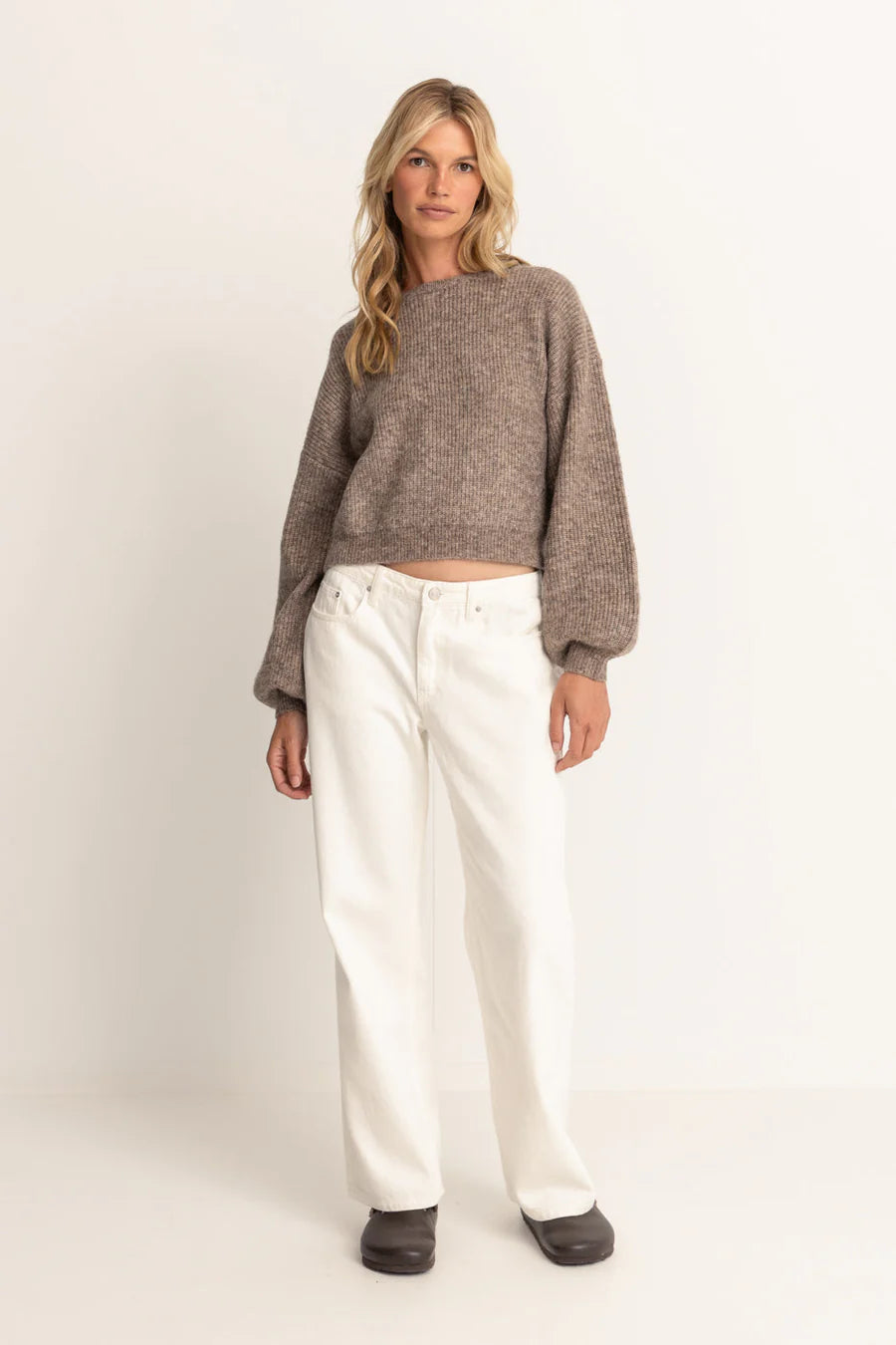 The Quinn Knit Jumper is all about subtle style and comfort. With a relaxed fit and balloon sleeves, this crew neck jumper brings an effortless chic to your wardrobe. The mid-length body makes it an ideal layering piece for crisp coastal evenings.