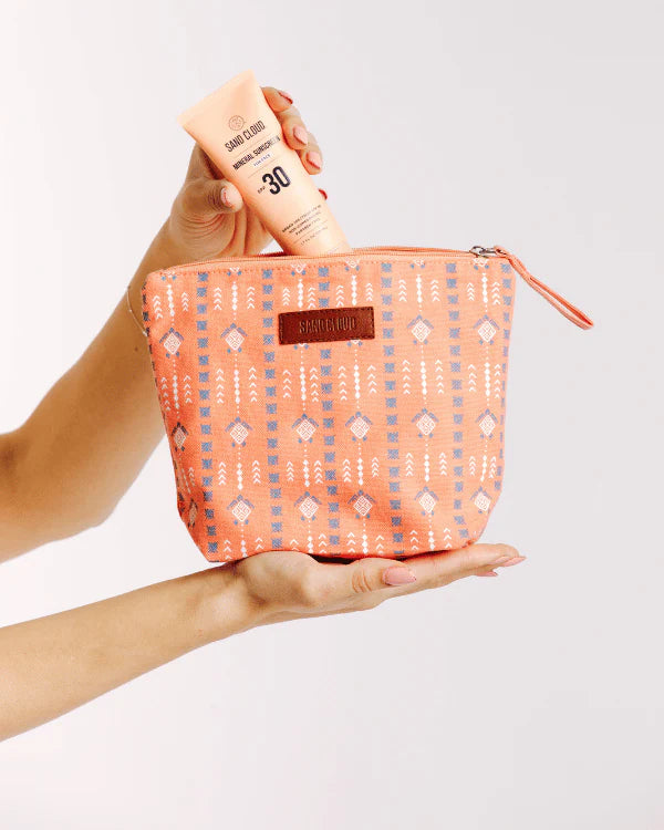 Introducing the Diamond Mudcloth printed Pouch, your stylish essential! Made in India from 100% Organic Cotton Canvas with a 100% Recycled Poly Lining and Fair Trade Certification, it's both sustainable and chic. Complete with a secure zipper closure and embellished with a chic Sand Cloud vegan leather patch, it's the perfect blend of functionality and style.