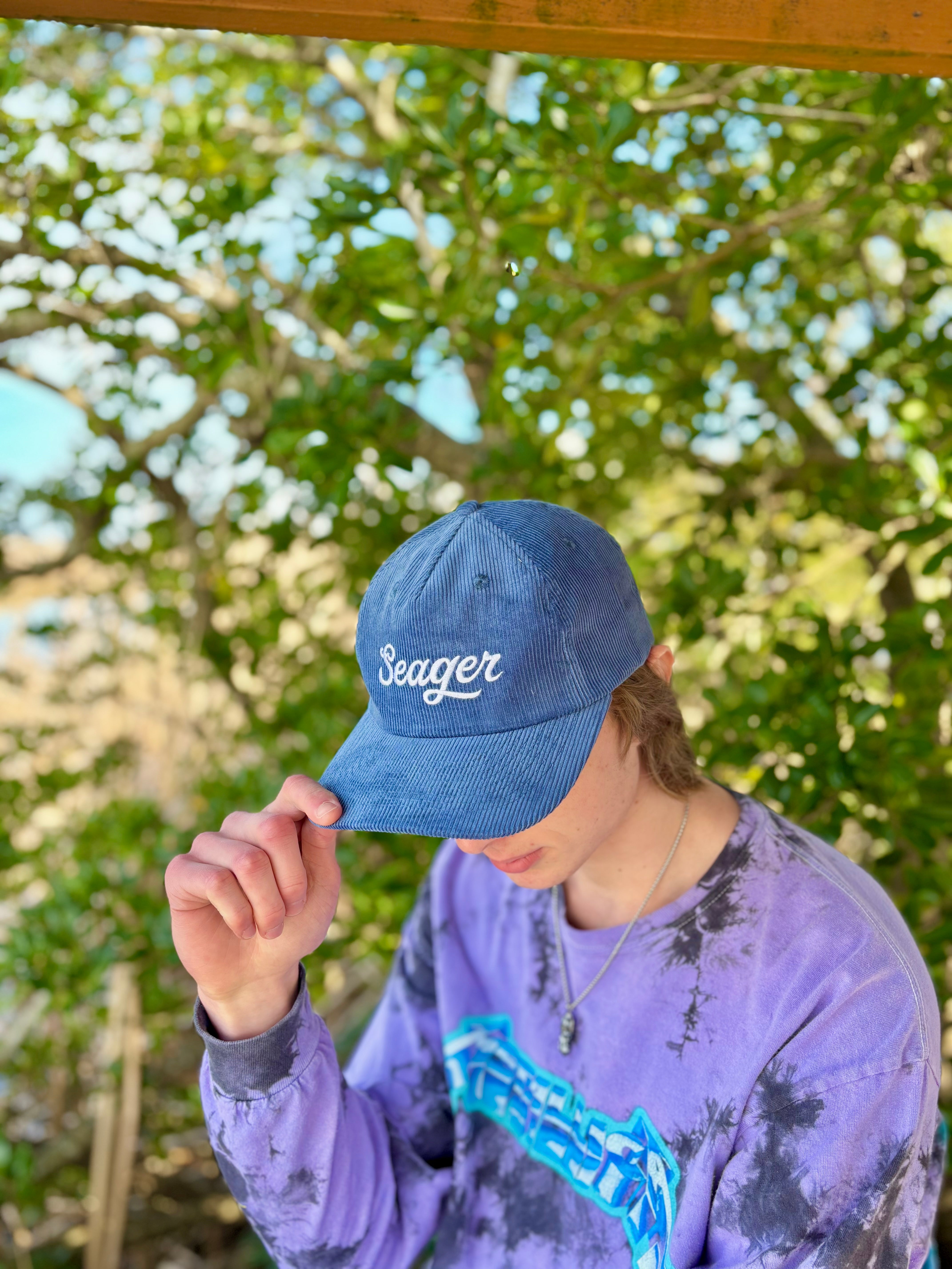 Timeless, comfortable, and a style that's here to stay, the Big Blue is a standout. Featuring a 100% cotton corduroy exterior and an embroidered Seager script font, this medium profile, unstructured snapback is made to get better over time.
