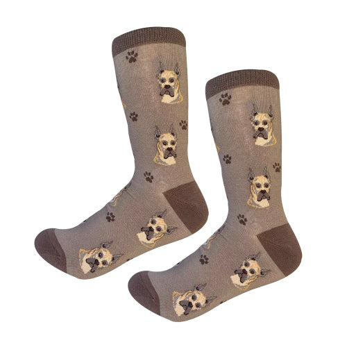 Show some love to your dog by wearing these adorable  puppy-themed socks!  We have a variety of colors and many breeds. They are made of 65% Cotton, 25% Polyurethane & 10% Polyester. Come in adult size medium - one size fits most, and are unisex.