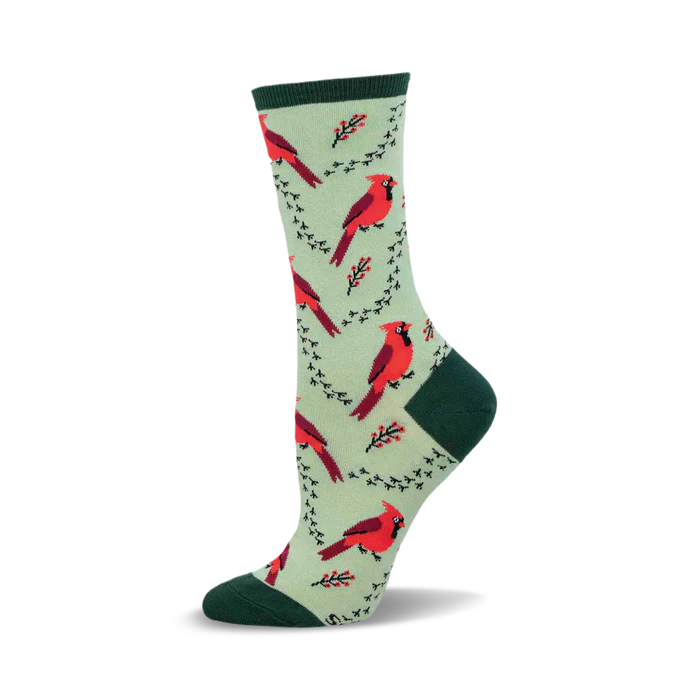 Cardinals are the maestros of the avian world, gracing our backyards with songs as diverse and colorful as their vibrant red feathers. These delightful green socks, adorned with red cardinal birds perched on black branches, are a playful nod to natures most charming crooners. Perfect for those days you want a touch of whimsy and a reminder of the beauty found in every corner of the great outdoors.