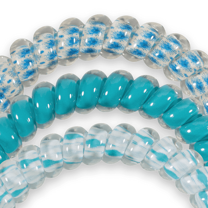Soft Surf Small Hair Ties in Blue and White offer a strong grip without damage, doubling as a chic wrist accessory when not in use. Your new favorite hair essentials all year round.