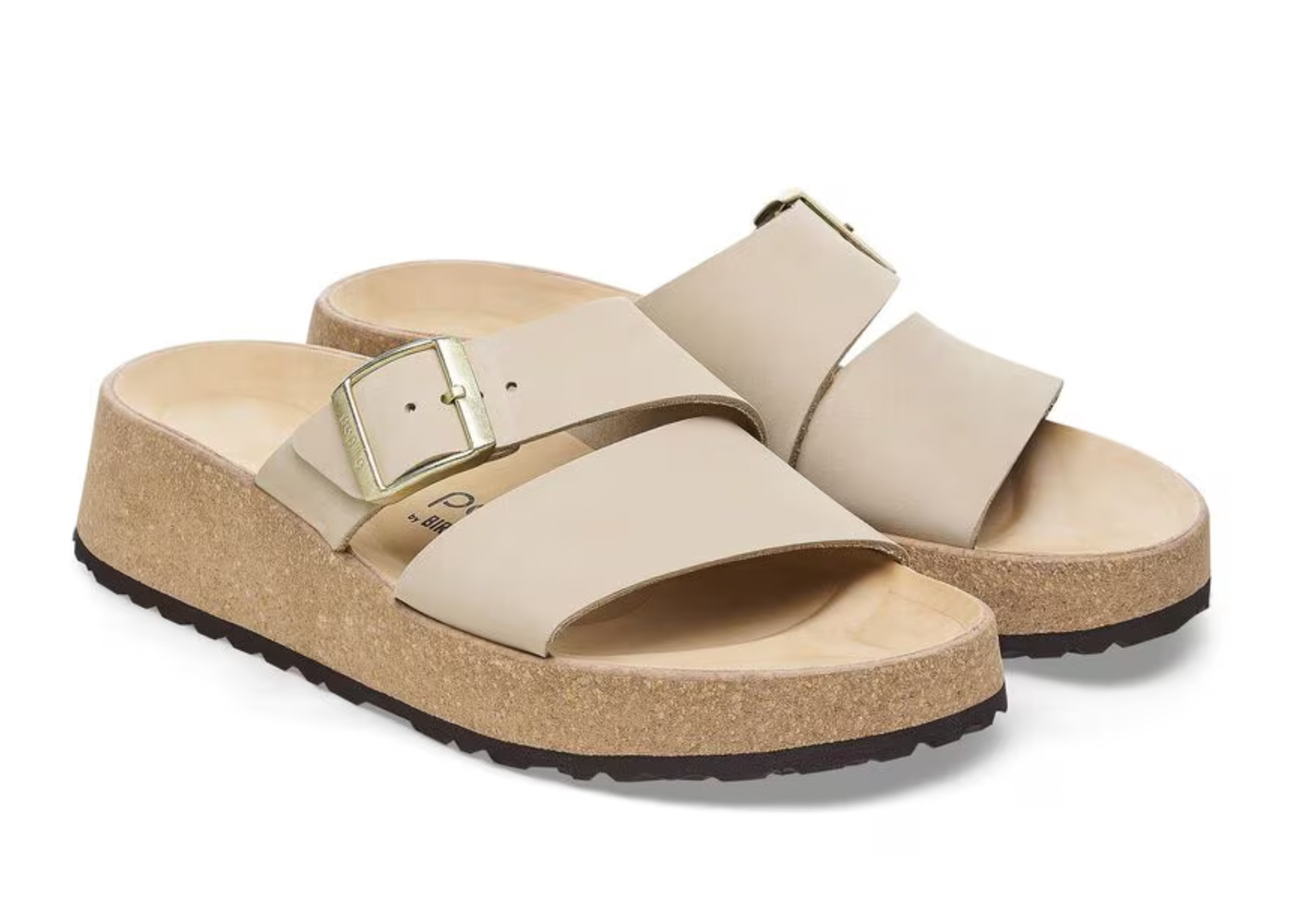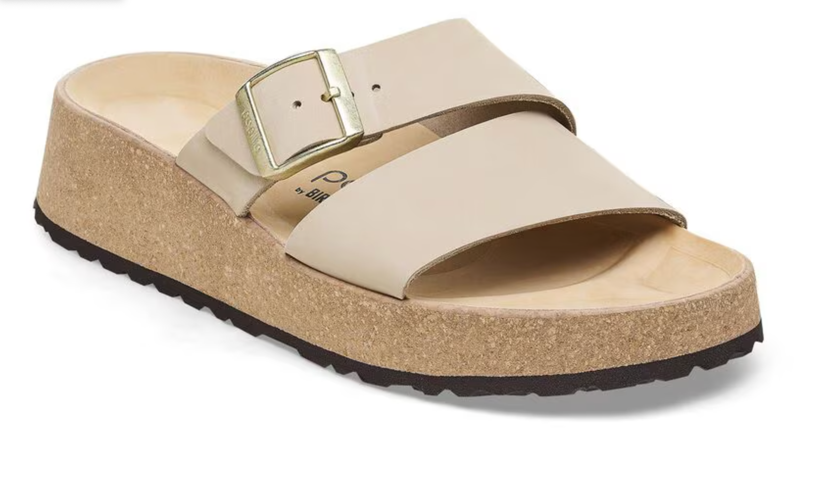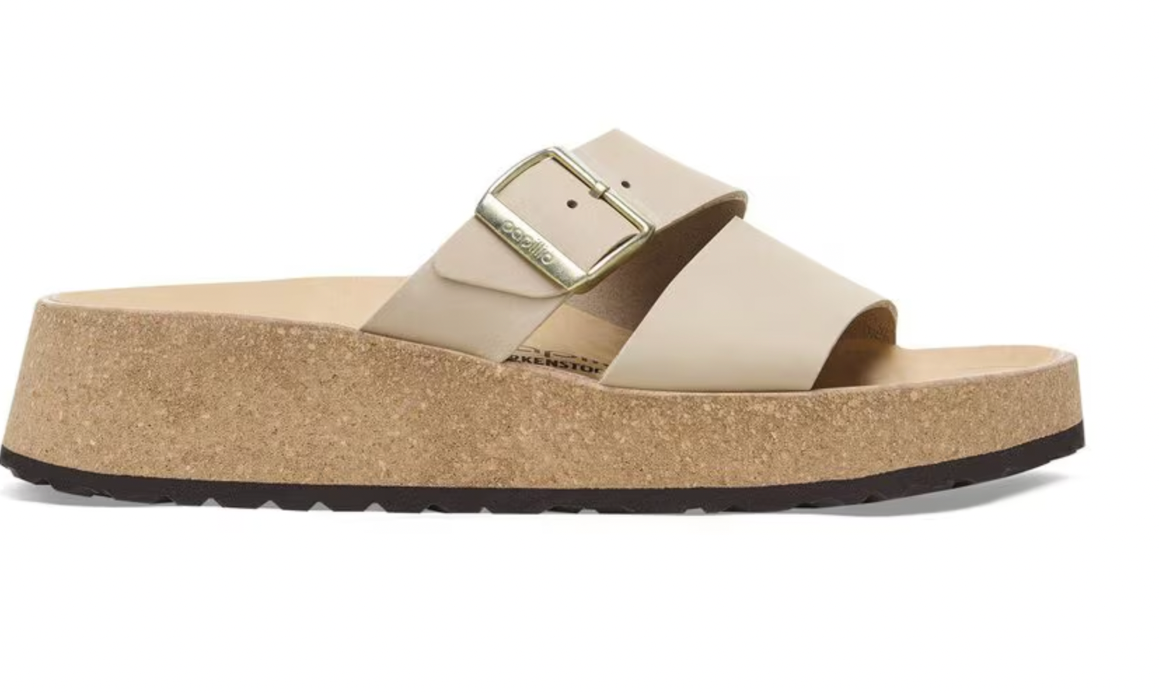The latest wedge from Papillio® by BIRKENSTOCK®. The Almina's wide leather straps provide added stability while giving your style the space to stand out. Its cork wedge brings classic BIRKENSTOCK® style into the mix, along with a contoured footbed for support that stays above the rest.