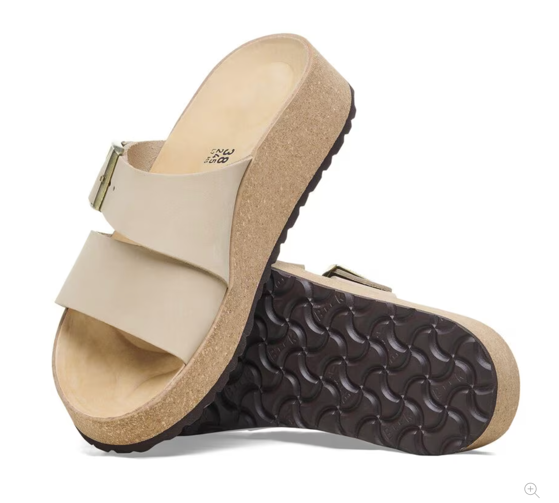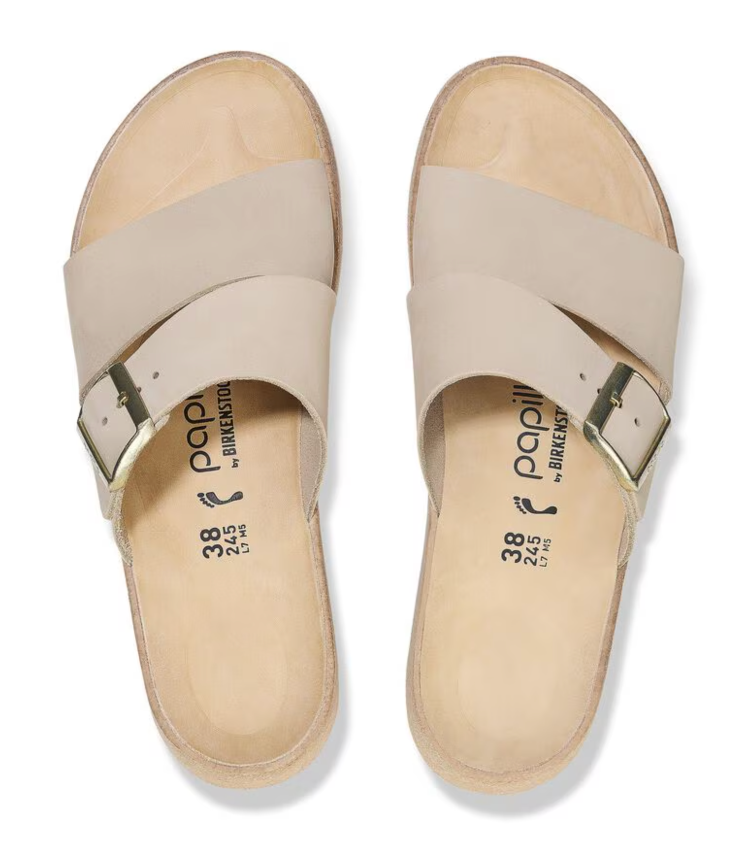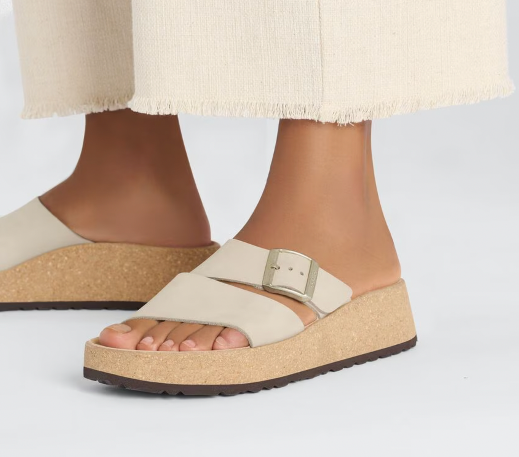 The latest wedge from Papillio® by BIRKENSTOCK®. The Almina's wide leather straps provide added stability while giving your style the space to stand out. Its cork wedge brings classic BIRKENSTOCK® style into the mix, along with a contoured footbed for support that stays above the rest.