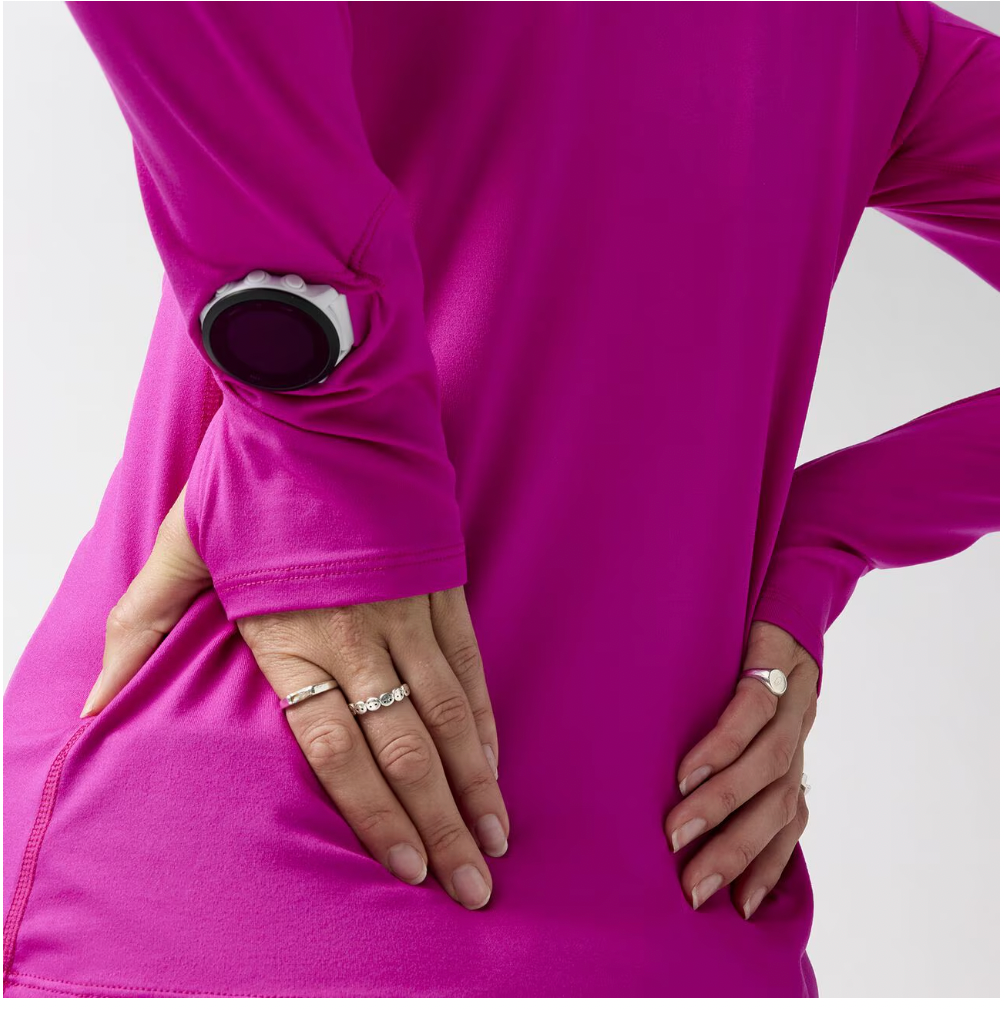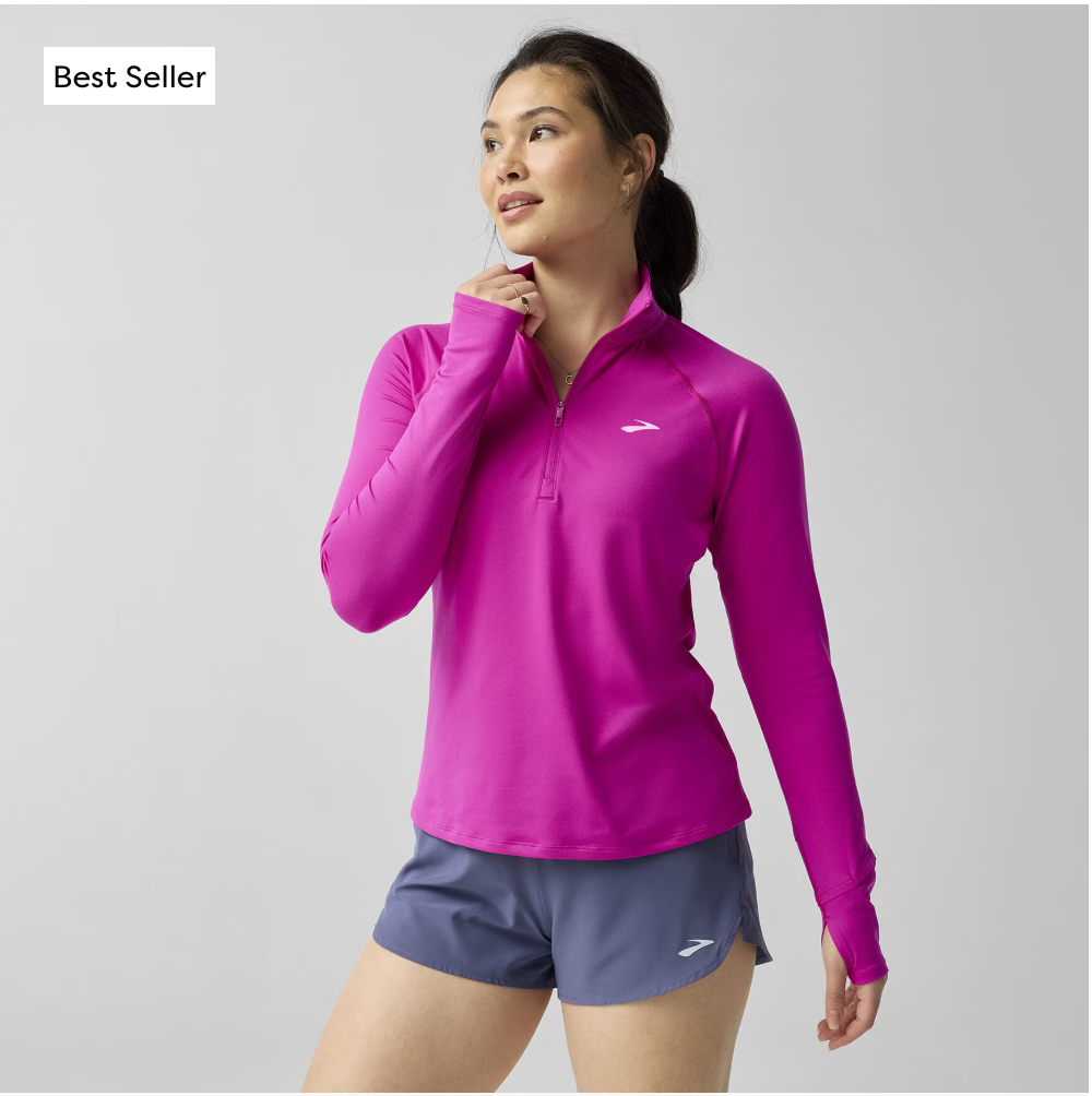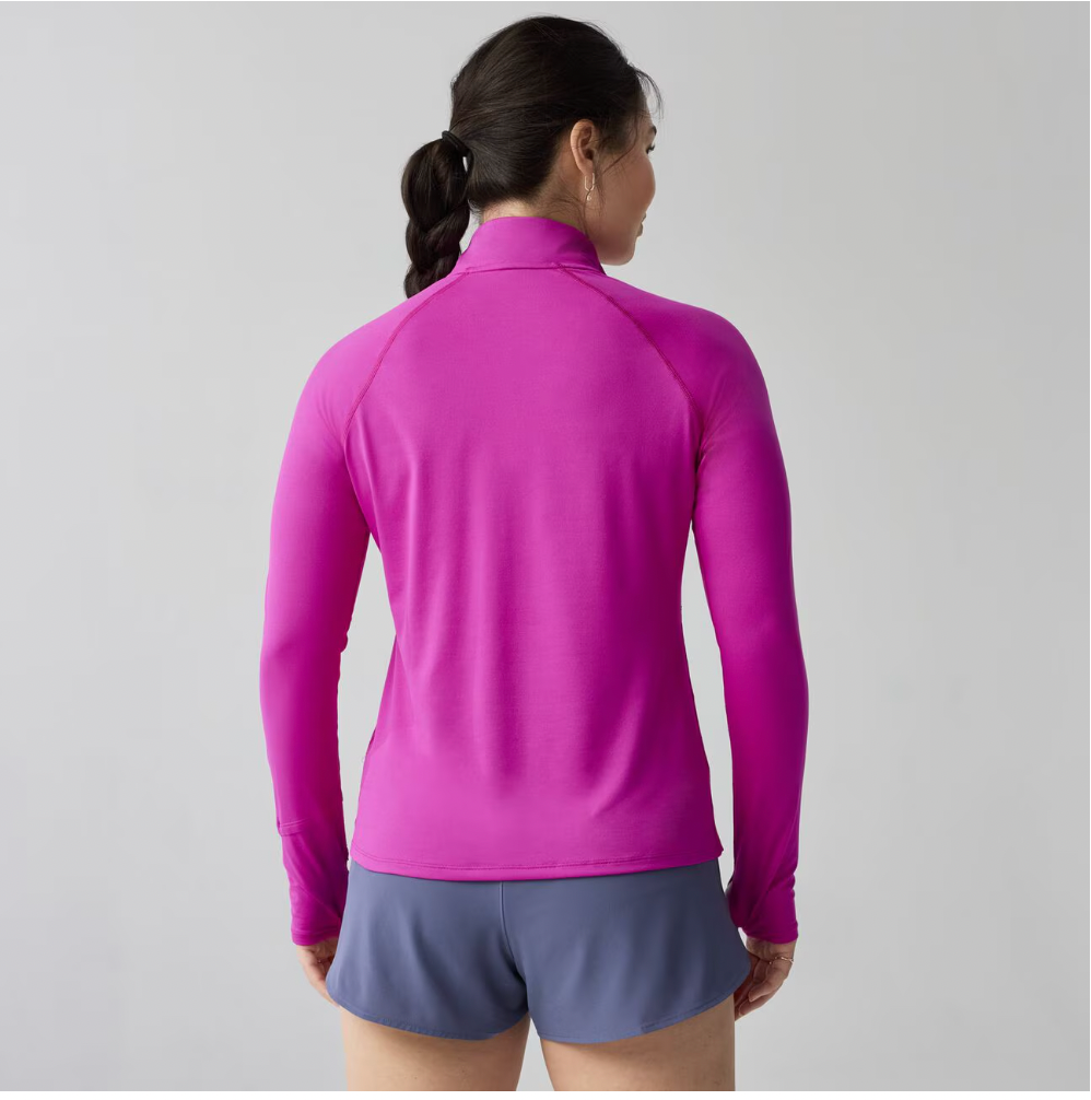 The softest layer in your running wardrobe just got an upgrade — our women's half zip running top has a watch window so you can stay warm and toasty when you check your pace.