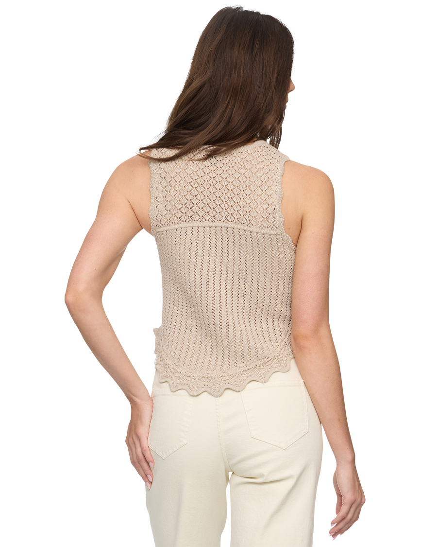 Breathable cotton crochet fabric shapes this effortlessly stylish tank that features a universally flattering high neckline and a relaxed body that ends in an adorably scalloped hem. Pair with your favorite jeans or denim shorts for the perfect relaxed look.