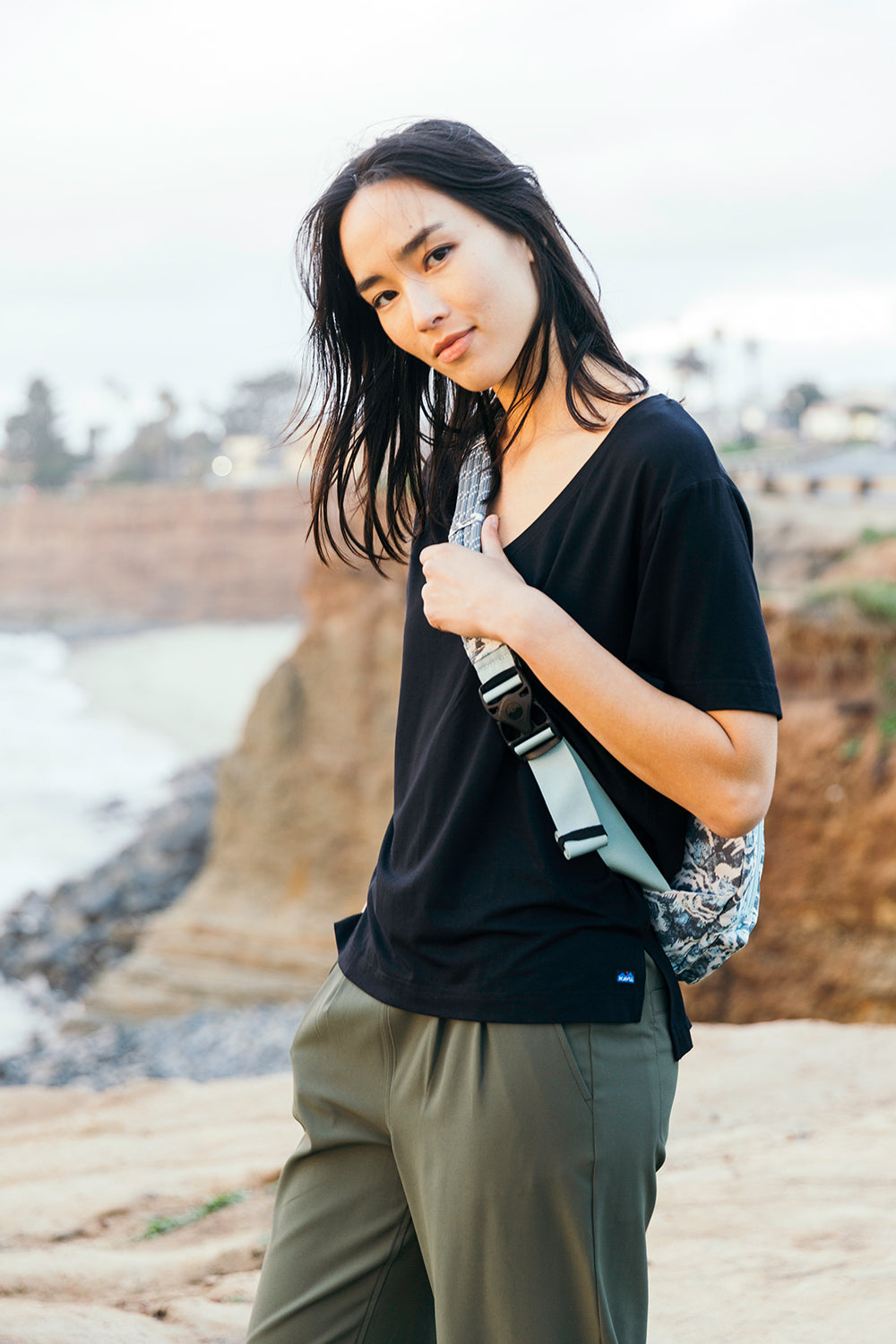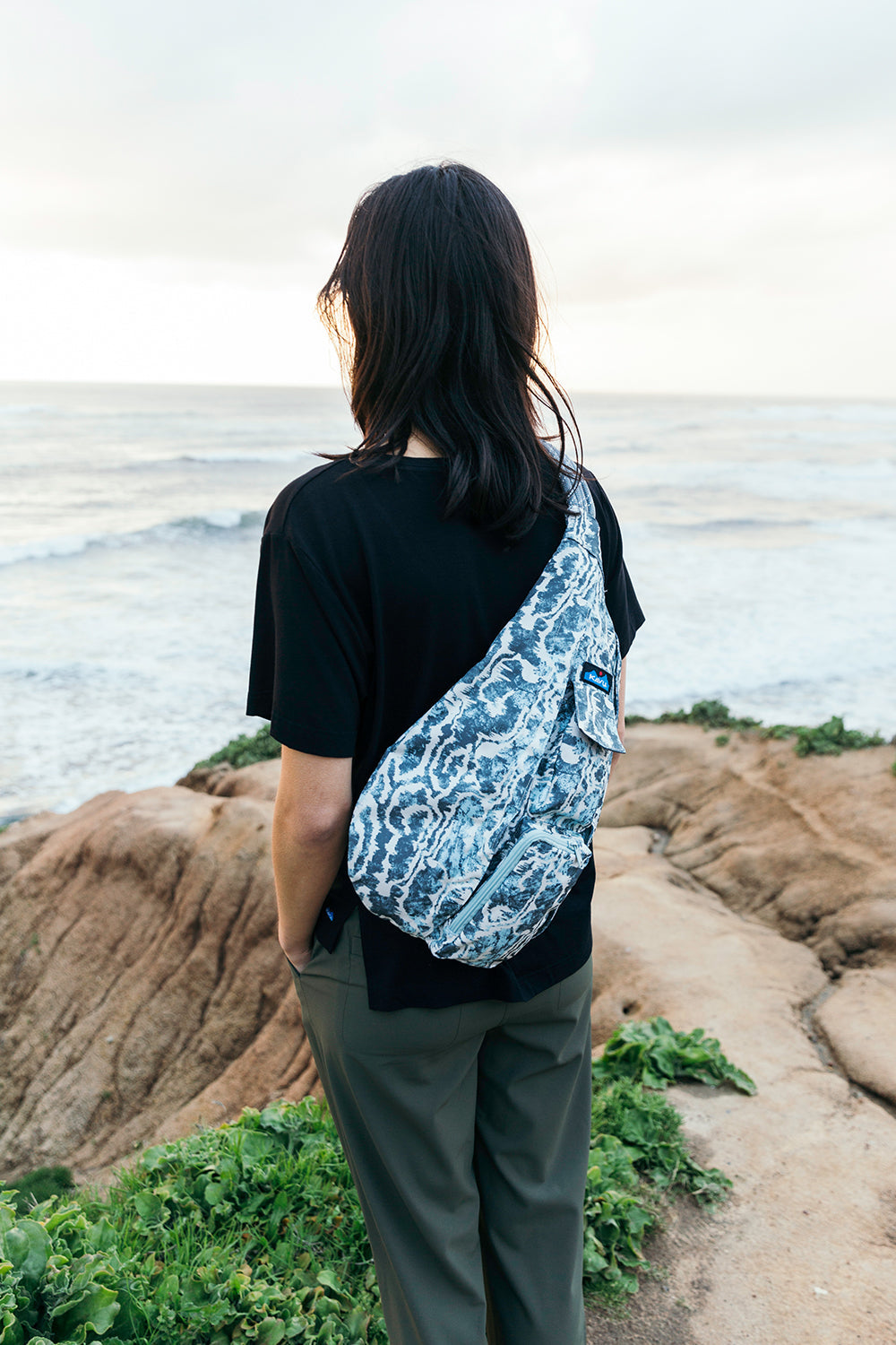 The Rope Sling fits the body like a bag should. It's similar in size and design to its fraternal twin the KAVU Rope Bag with one exception: the Rope Sling is made of polyester, making it water resistant.