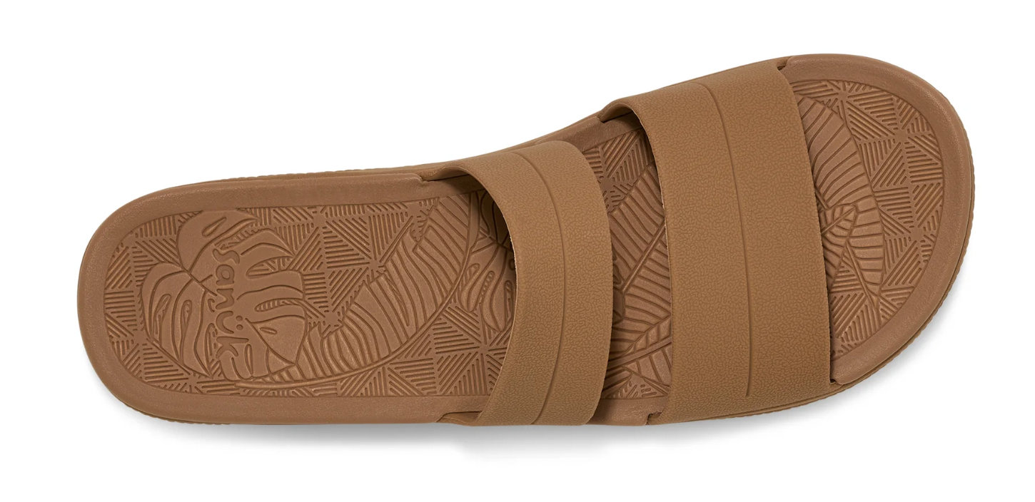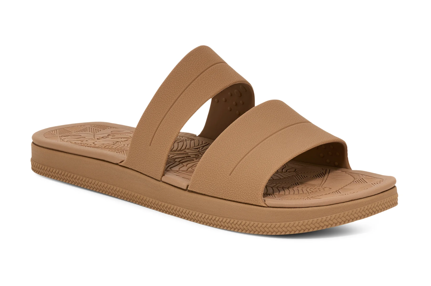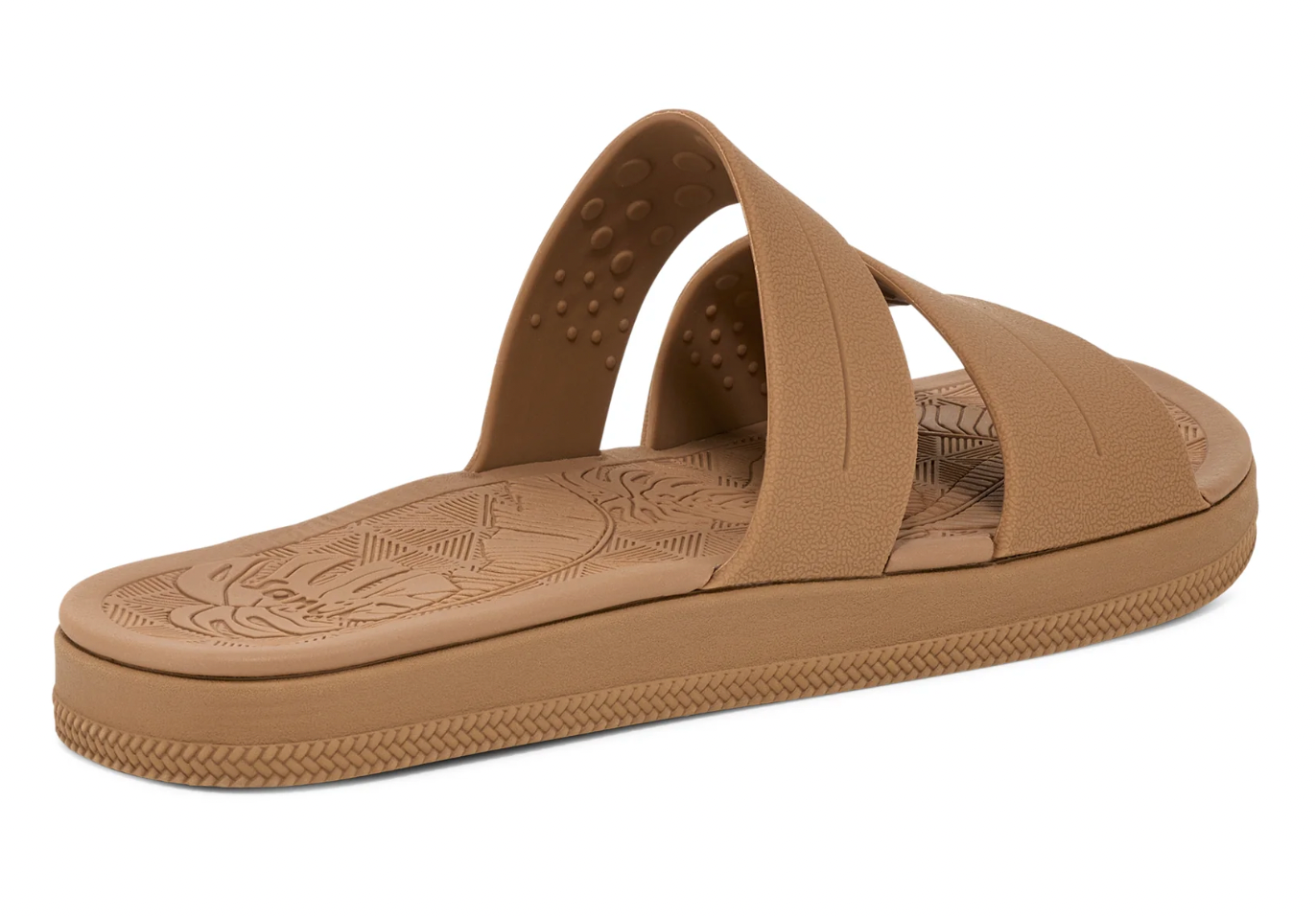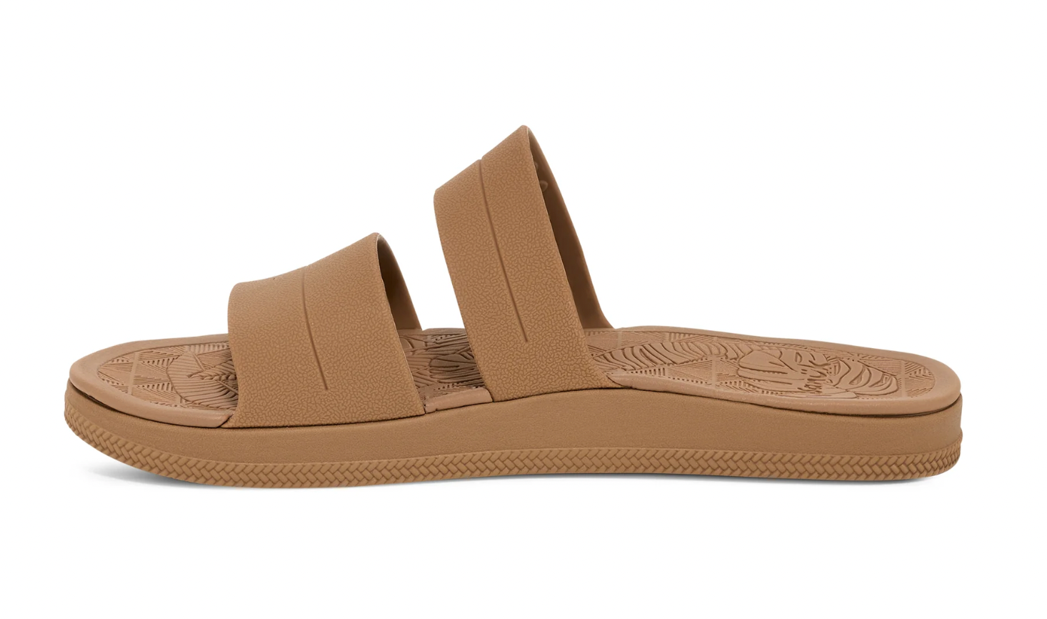 Soft, high-rebound, water-friendly SugarLite footbed made with 20% sugar cane EVA featuring a custom molded tropical motif