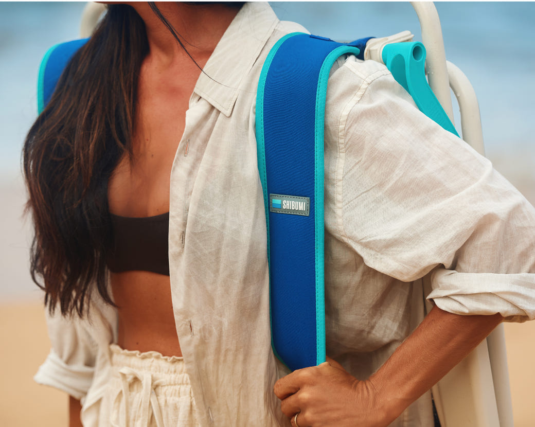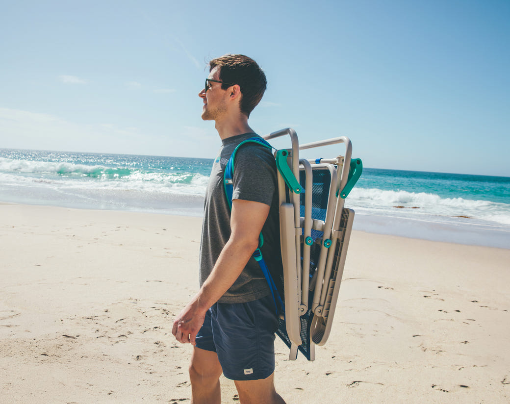 After years of searching for the holy grail of beach chairs the Shibumi Chair is here. A chair so comfortable you never want to get out of it, yet built so durable it will withstand years of hard lounging on salty beaches. An ultra comfortable DreamWave™ fabric is suspended on a marine grade aluminum frame without the usual uncomfortable bars disturbing your extended nap. Choose freely from four different recline positions. When you wake up refreshed the chair folds down thin and carries easily on your back with padded backpack style straps. And of course the Shibumi Chair features double ports to fit two neoprene holders for your beach beverage of choice and essentials.