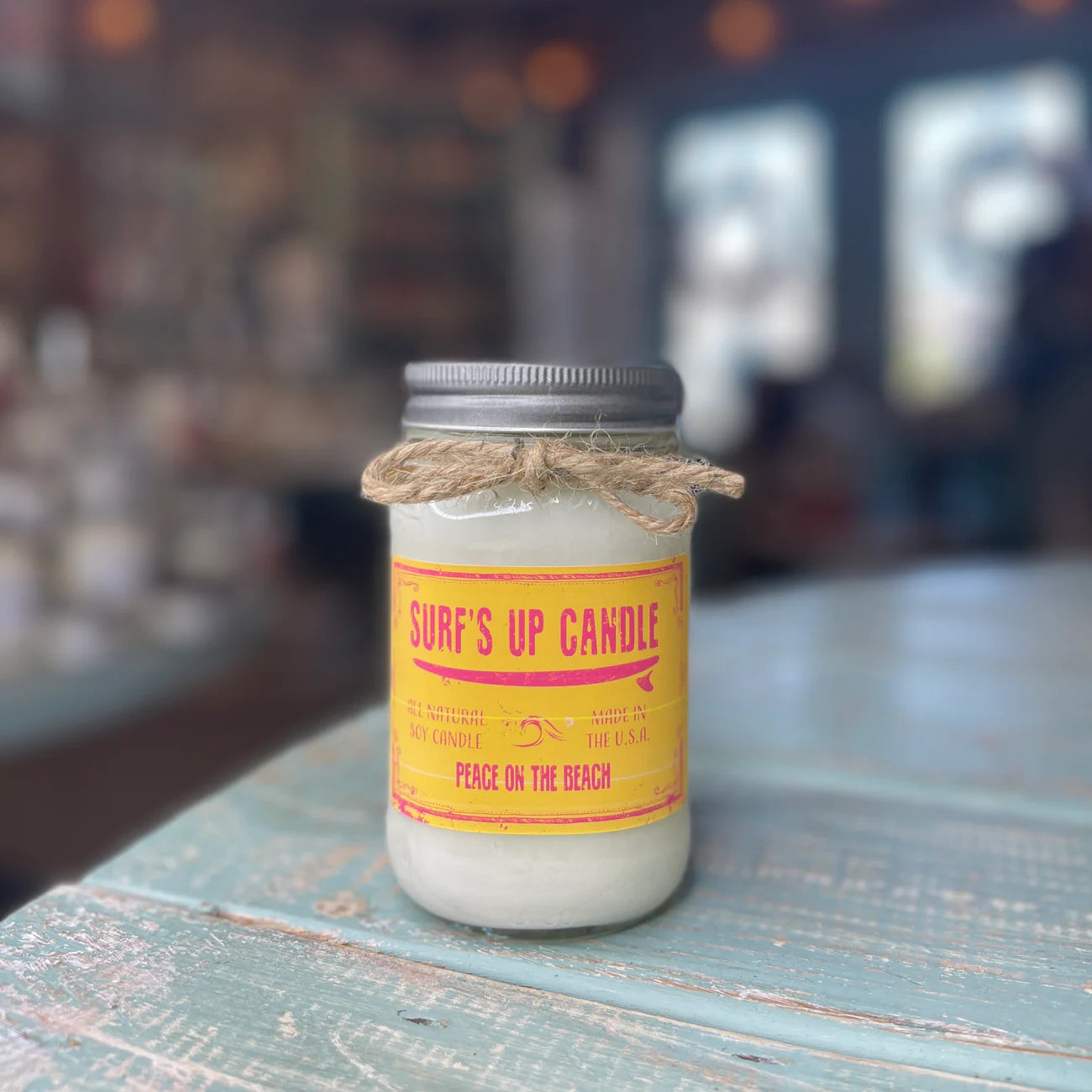 Surf's Up Candle 16 oz Mason Jar PEACE ON THE BEACH