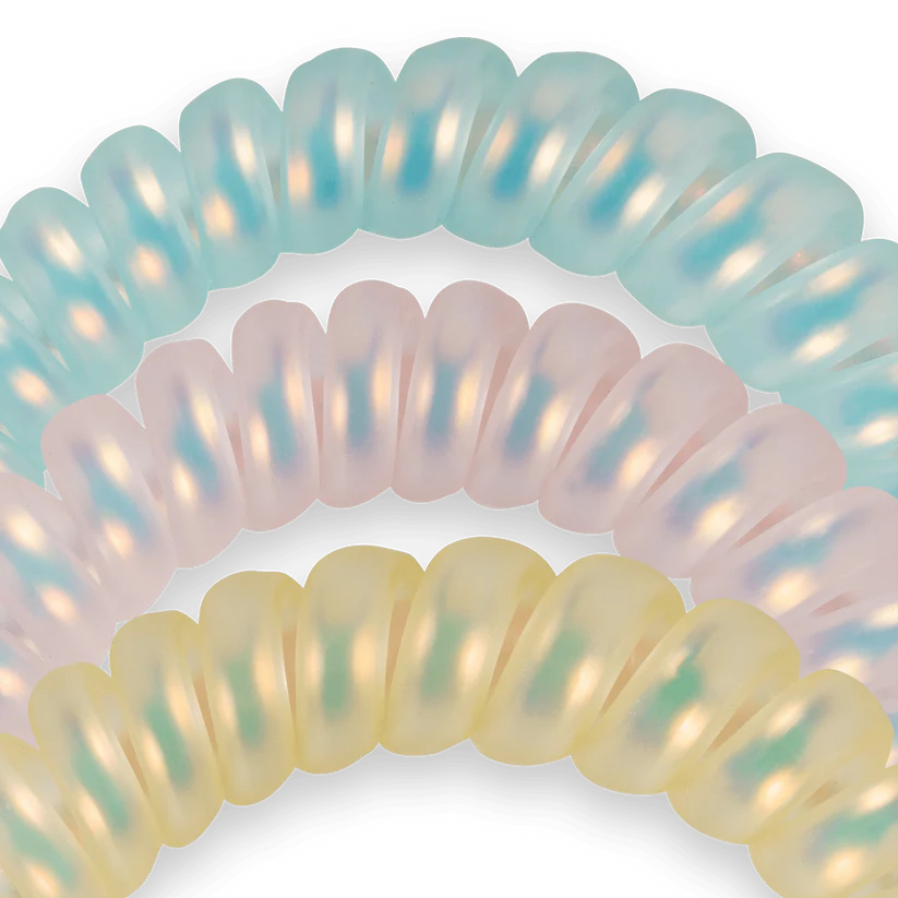Piece of Paradise Large Hair Ties in Yellow Blue offer a strong grip without damage, doubling as a chic wrist accessory when not in use. Your new favorite hair essentials all year round.