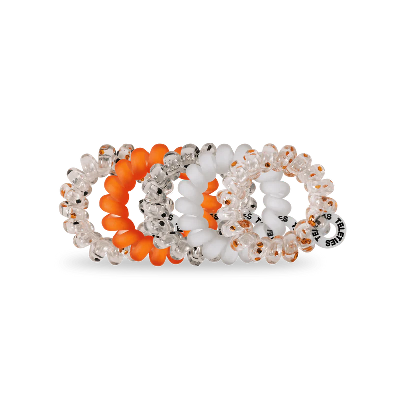 Spooky Sparkles Tiny Hair Ties in Black and Orange are the ultimate solution for securing braid ends, styling little kids' hair, or managing ultra-thin strands. These mini hair coils are designed to fit an adult finger like a ring rather than a bracelet, offering a strong, damage-free grip that keeps hair in place all day—without breakage, creases, or headaches.