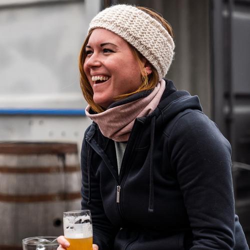 Hand knit with feel-good colors in a soft and chunky yarn, perfect for a bluebird day when a hat’s too much but you need some cozy comfort.