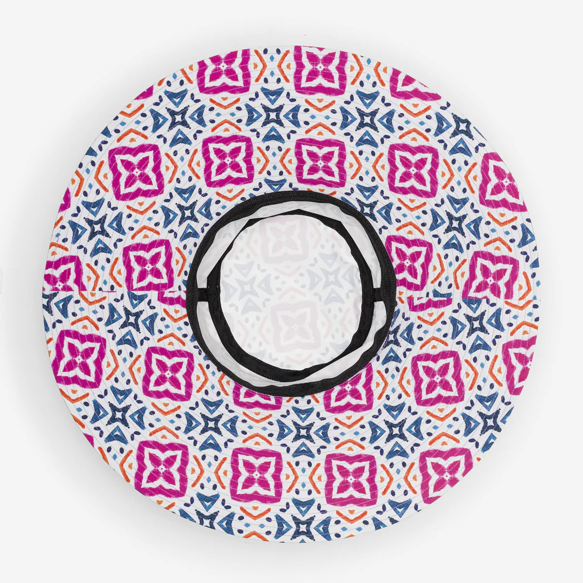 Make every sunny day a little brighter with the Marysol Packable Sun Hat. Designed with bold, joyful prints and a wide brim, it offers 360° sun protection and plenty of personality. Made with 100% recycled polyester and UPF 50+ fabric, it keeps you cool, covered, and eco-conscious. The adjustable fit ensures all-day comfort, while the lightweight, packable design makes it easy to toss in your bag and go—whether you're beach-bound, tending to your garden, or strolling through town. Stylish, practical, and ready for any adventure, this hat is your go-to for sunny-day fun.